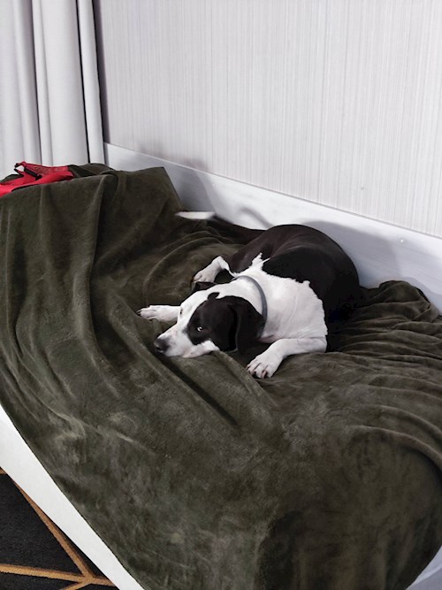 I won't be in the city for work. And I'm looking for a place to leave my dog. She needs to be walked (twice a day) and fed. She's an Amstaff, is very calm, and gets along well with other dogs.