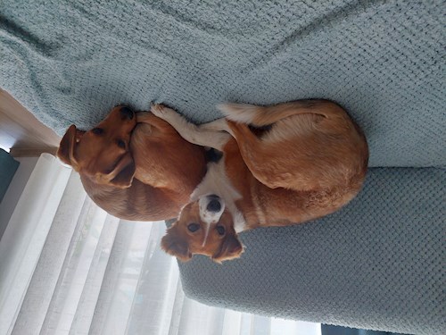 un catel de 4 ani, talie mica, metis, vaccinat, prietenos si o catelusa la fel de prietenoasa de 3 anisori, vaccinata, metis, ambii castrati